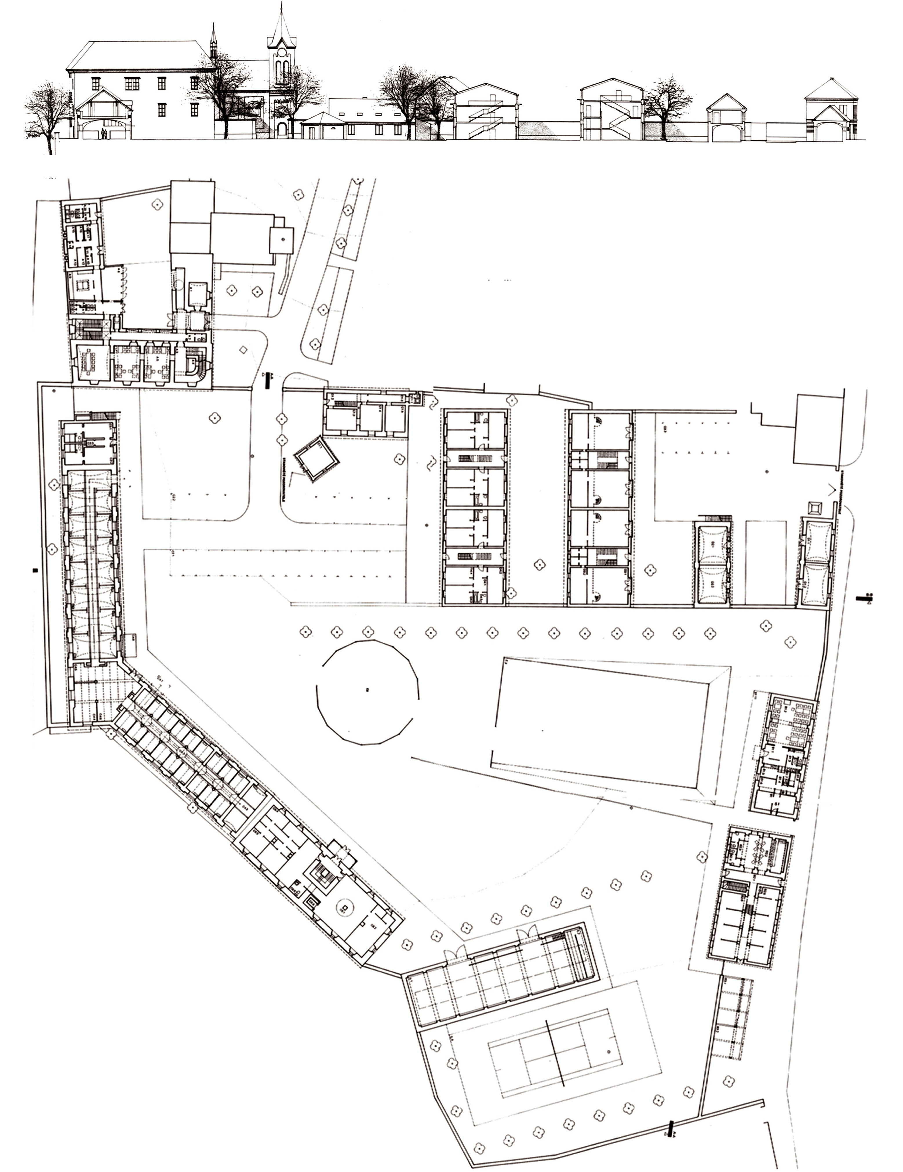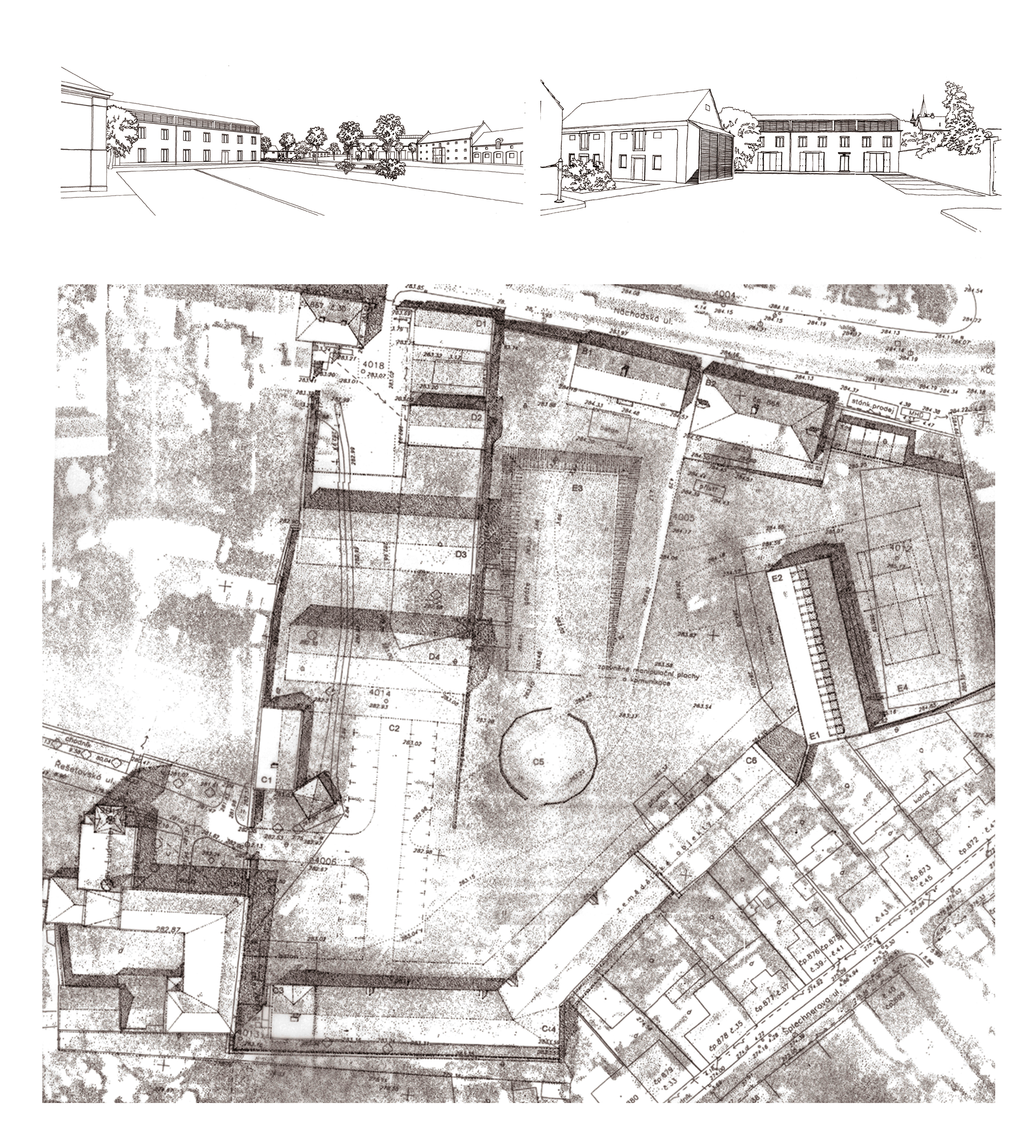 Stávající urbanistická struktura areálu je doplněna dvěma nově navrženými objekty v severozápadní části území. Objekty vymezují hlavní prostory areálu. Ten je rozdělen do třech základních provozních celků: