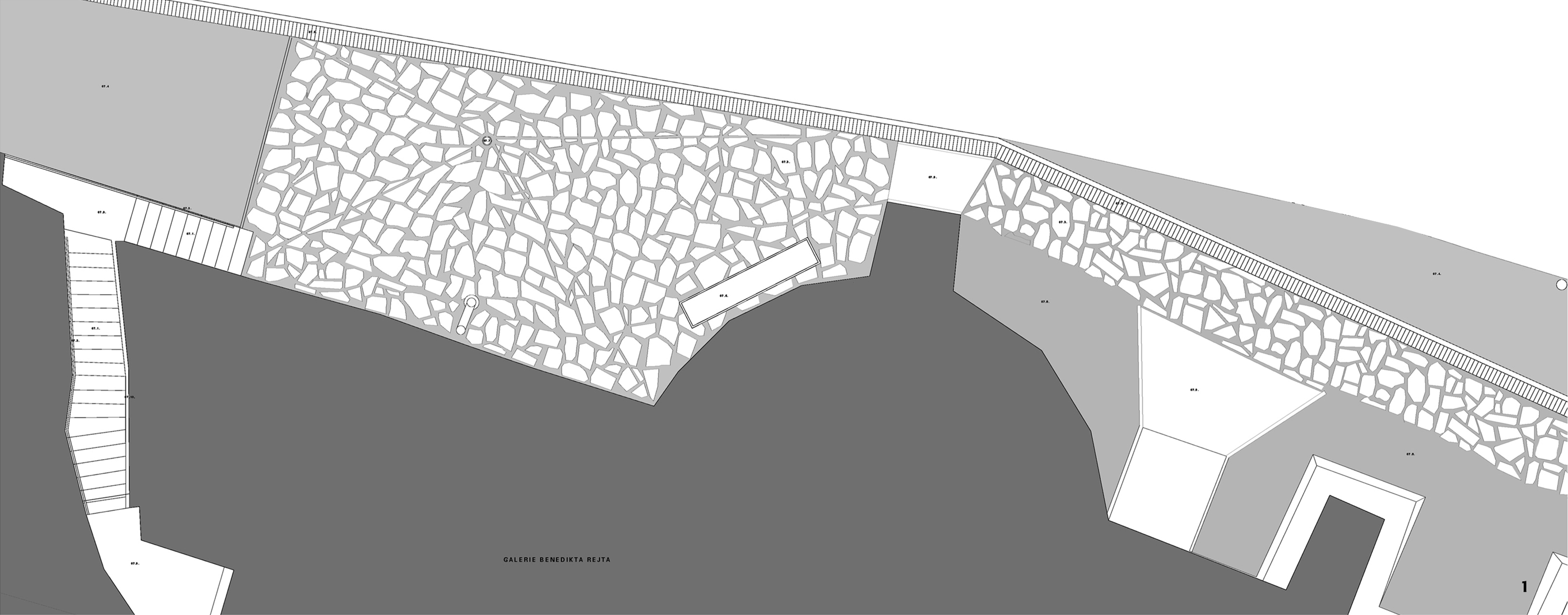 Varianta “a” řeší propojení uličky s pěším tahem přidáním schodišťového ramene v šířce odskoku stávajícího hradebního pásu. Výškové úrovně všech schodišťových ramen jsou změněny a nově navrženy s ohledem na využivatelnost (pohodlný sklon).